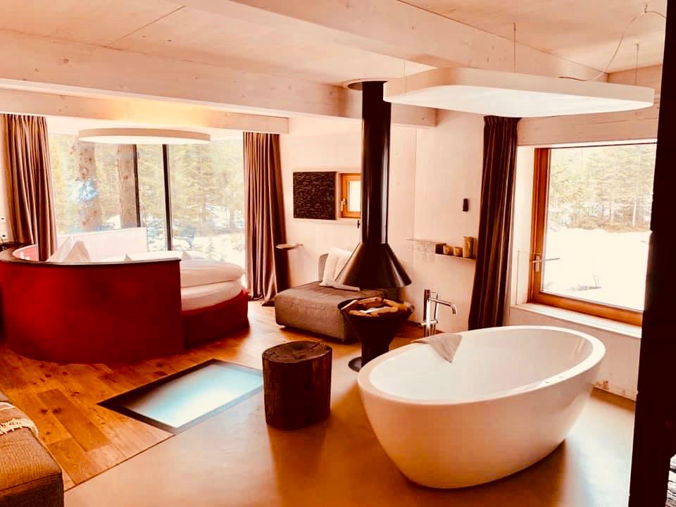 Infatti, sono case estremamente lussuose con soggiorno, televisore, bagno con doccia sensoriale, idromassaggio e piccola sauna. Sono stati applicati i concetti della bioarchitettura per un mix di tradizione e design moderno. Dall’alto, c’è una vista straordinaria sulle montagne circostanti e sul bosco.