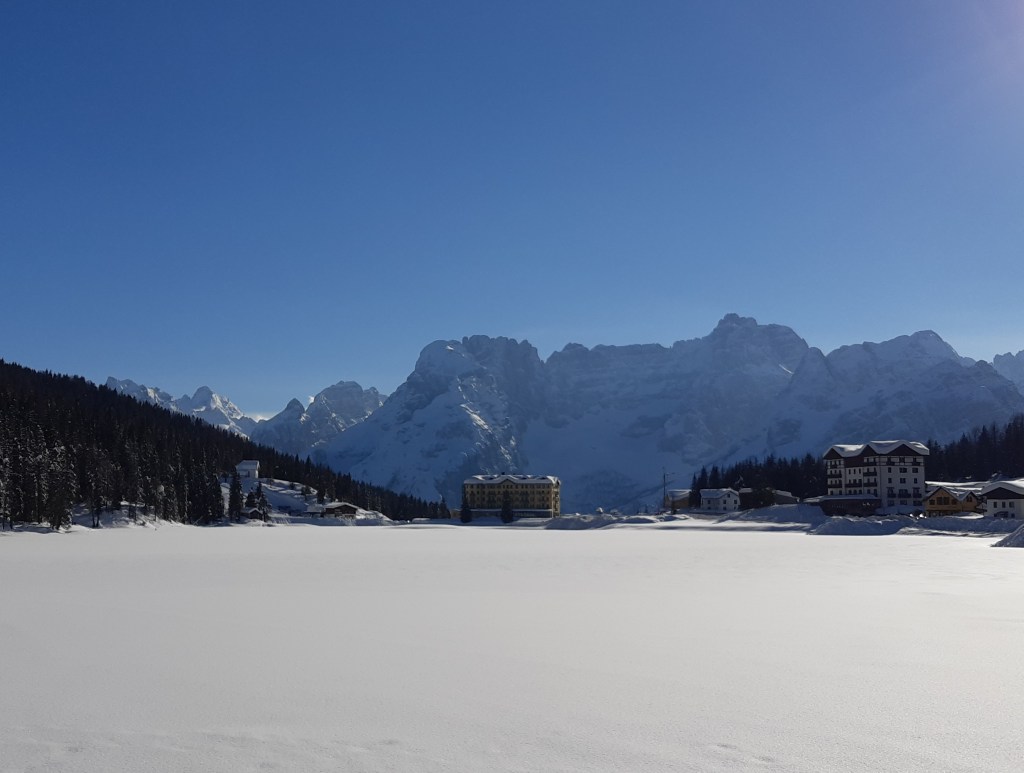 In piena ottemperanza alla normativa covid siamo saliti con tre auto, dandoci appuntamento per le 10 al parcheggio del campeggio di Misurina. Abbiamo lasciato la pianura padana nel grigiore e, mano a mano che ci siamo avvicinati alle Dolomiti, il cielo è diventato sempre più blu. Quando siamo arrivati la temperatura al sole era tuttavia di -15°.