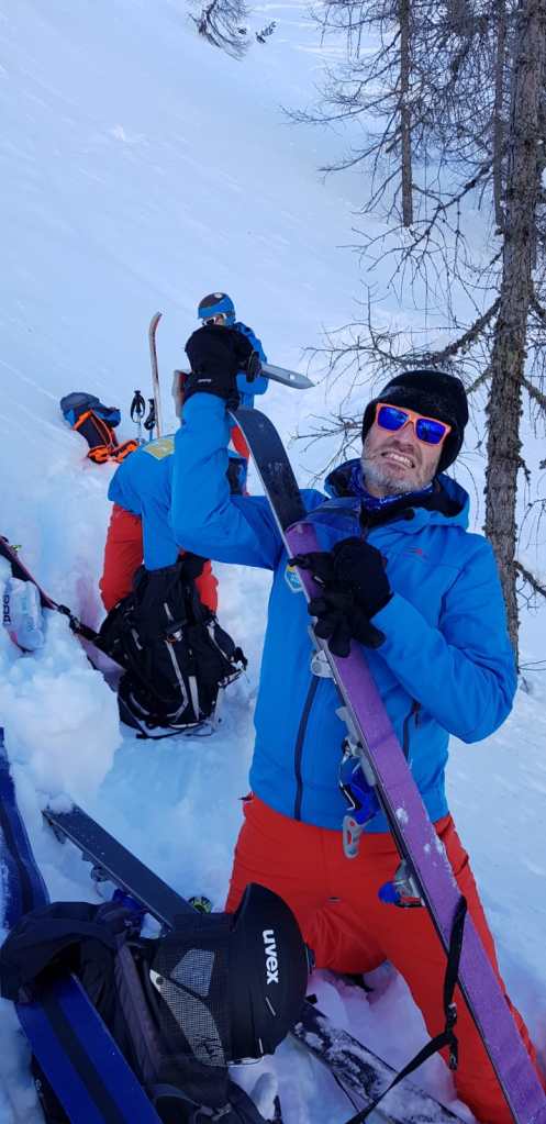 La discesa è stata spettacolare: per il sottoscritto è stata la prima volta “nella polvere”; durante le curve la neve leggerissima arrivava quasi sopra le ginocchia.