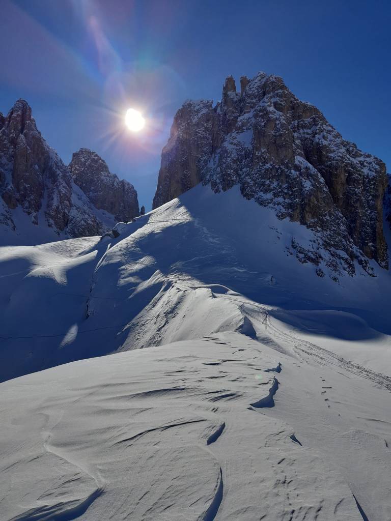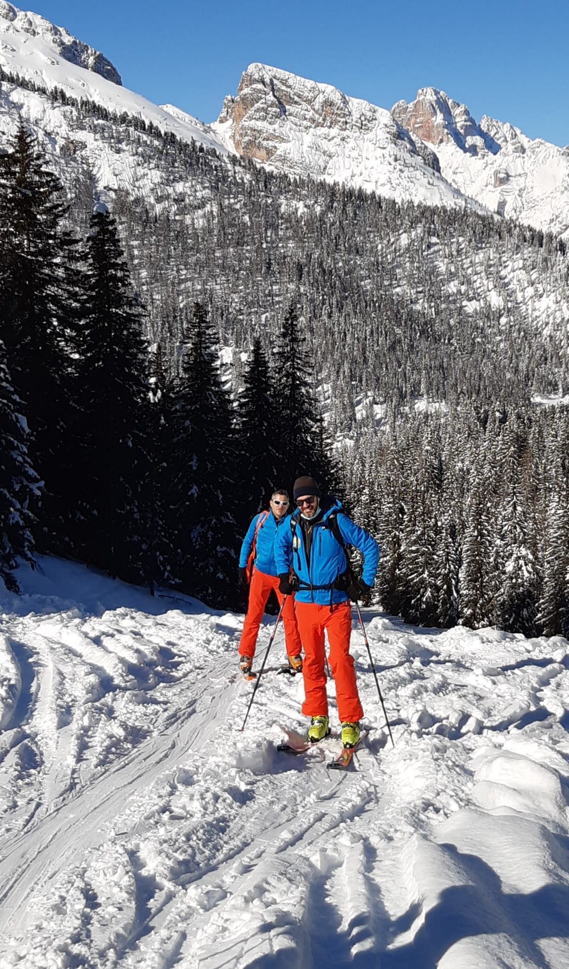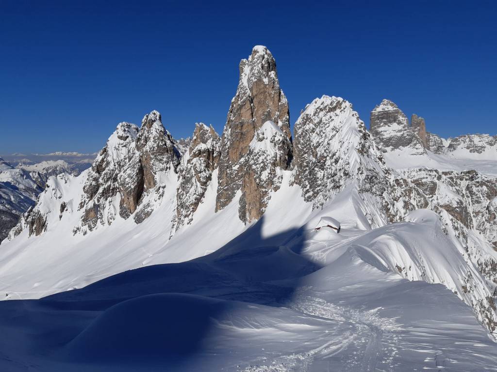 Venerdì 12 febbraio 2021 l’Apricot Ski Club in composizione plenaria ha fatto un’uscita di sci alpinismo sulle pendici dei Cadini di Misurina, verso il rifugio Fonda-Savio (sotto la Forcella del Nevaio). Della comitiva facevano parte anche Alberto e Giancarlo.