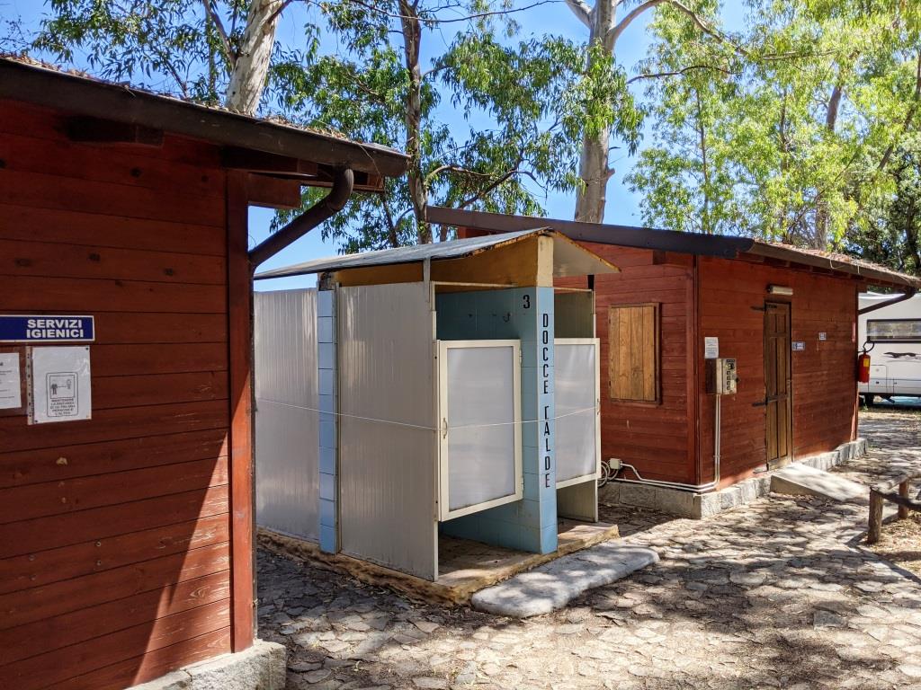 Il blocco servizi presenta WC, docce fredde e docce calde. Sono spartane ma funzionali.