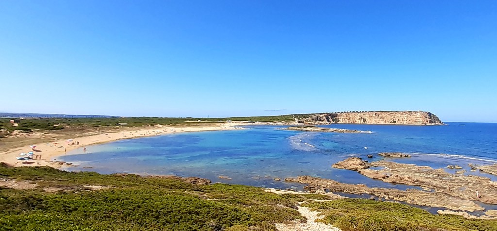 Per il pernottamento, io ho sempre optato per il grande parcheggio gratuito a servizio della spiaggia di Sa Mesa Longa, che dista meno di 2 km (per maggiori info su questa selvaggia spiaggia e il suo parcheggio, clicca qui). Qui sotto una foto.