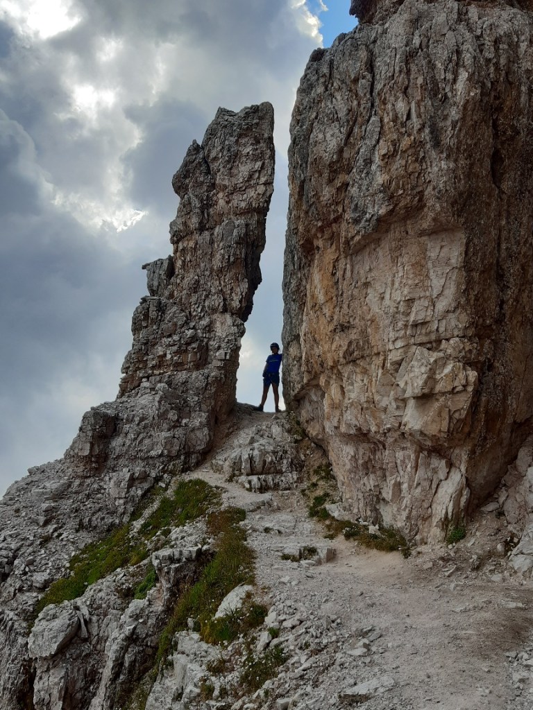 Il sentiero 419 ha poi iniziato a salire, per tornare sul 441 poco prima di impennarsi nell’ascesa della forcella Averau (2435 m slm). I bambini in alcuni parti hanno dovuto utilizzare le mani per arrampicarsi.