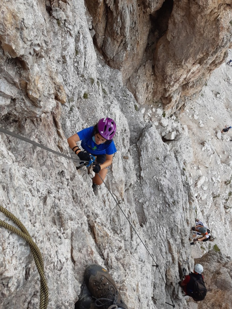 Come anticipato, la ferrata presenta diversi passagi piuttosto tecnici, che hanno impegnato Giulia.
