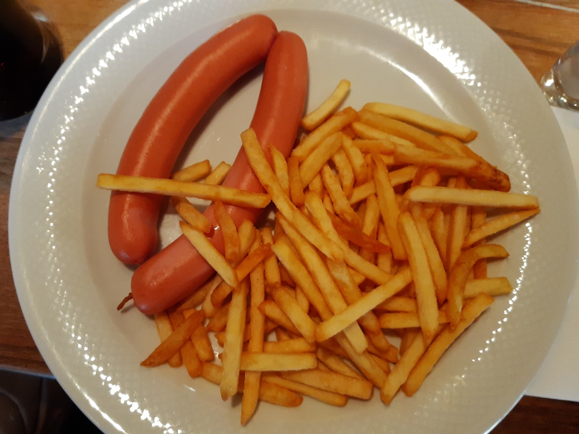 Alle 13:15 abbiamo pranzato sulle pendici del Passo Gardena, nella Baita Pastura, piccolo rifugio in legno gestito da una famiglia (credo) napoletana. Abbiamo però ordinato wurstel e patatine.