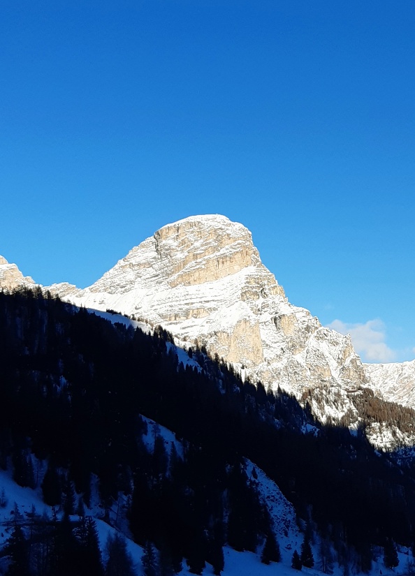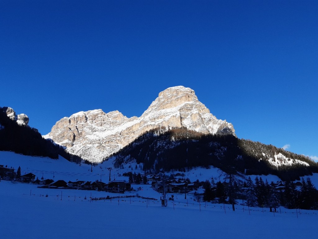 Dopo pranzo abbiamo scavallato il Passo Gardena, incantati dal tramonto sul Sassongher che domina Corvara.