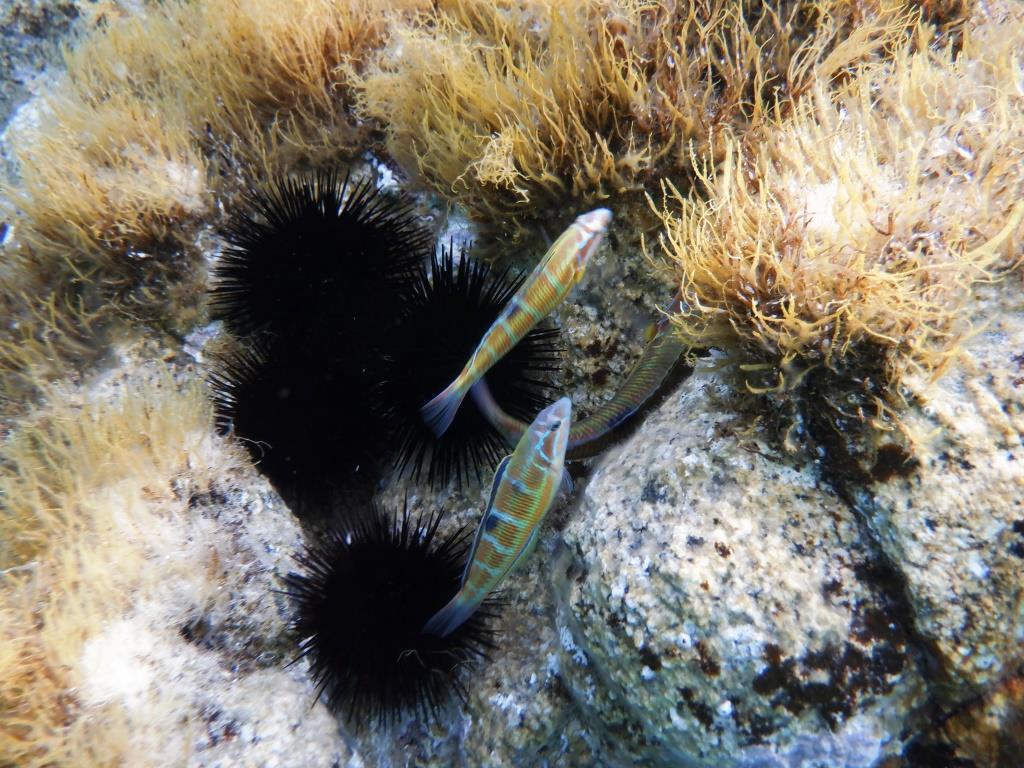 Nei pressi degli isolotti di Su Judeo si trovano moltissimi pesci e granchi.