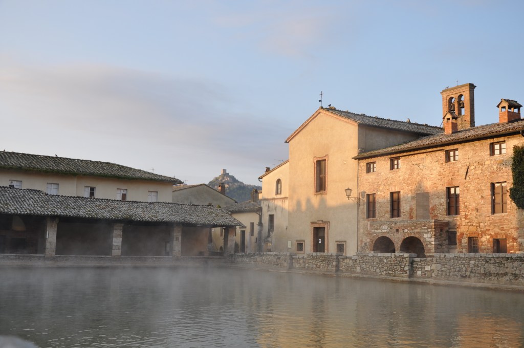 Il pomeriggio siamo andati a Bagno Vignoni, il borgo famoso perchè la piazza principale è costituita da una grande piscina di acqua termale.