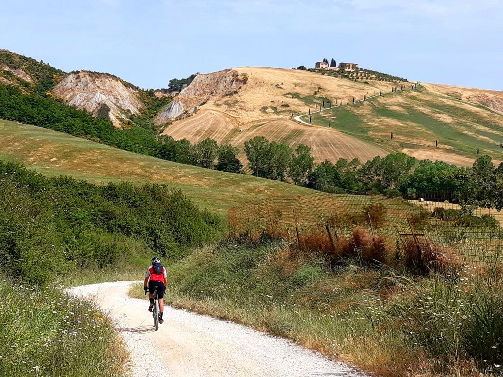 – in località di Bolsinina si entra sulla traccia Eroica e si inizia a salire verso Asciano, in un lungo tratto sterrato;