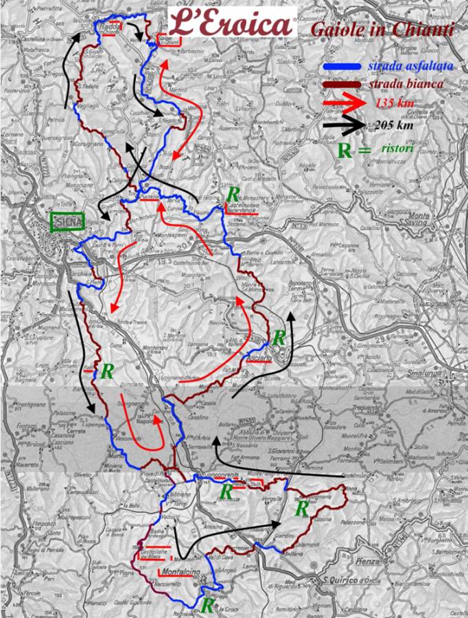 Il percorso della Eroica è ben tabellato, nel senso che ad ogni incrocio sono ben visibili i cartelli stradali indicanti la strada da seguire; quindi è facilmente percorribile anche senza la traccia gpx, che comunque è reperibile a presso il sito ufficiale.