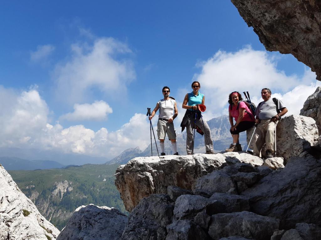 Al Tuckett abbiamo pranzato con panini e scattato la foto ricordo di gruppo, avendo alle spalle la Bocca del Tuckett.