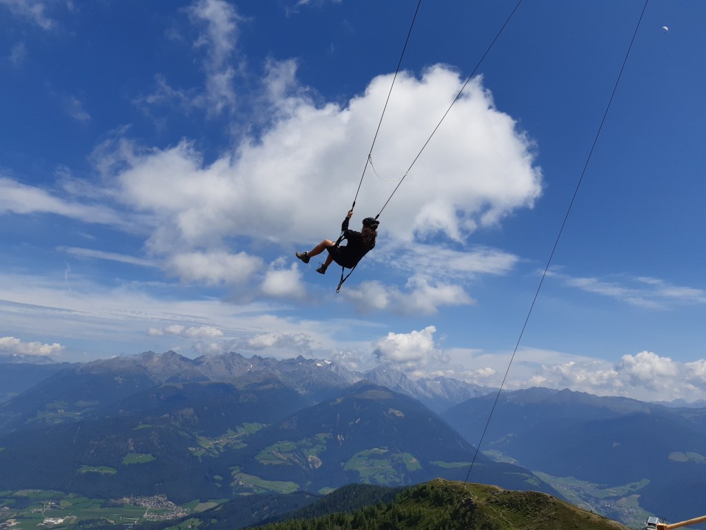All’inizio la velocita è altissima; il dondolamento dura parecchi minuti. Nella prima fase si sente una scarica di adrenalina causata dalla velocità che non ti fa capire nulla; quando l’altalena rallenta ci si può concentrare sul panorama.