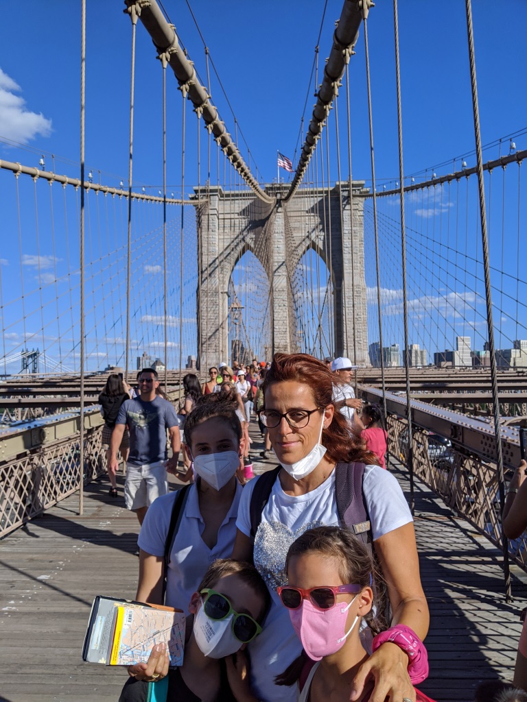Anche se stanchi, i nostri figli hanno voluto attraversare a piedi il ponte di Brooklyn. Come noto, è uno dei simboli di New York perché è stato il primo ponte ad unire Manhattan e Brooklyn.