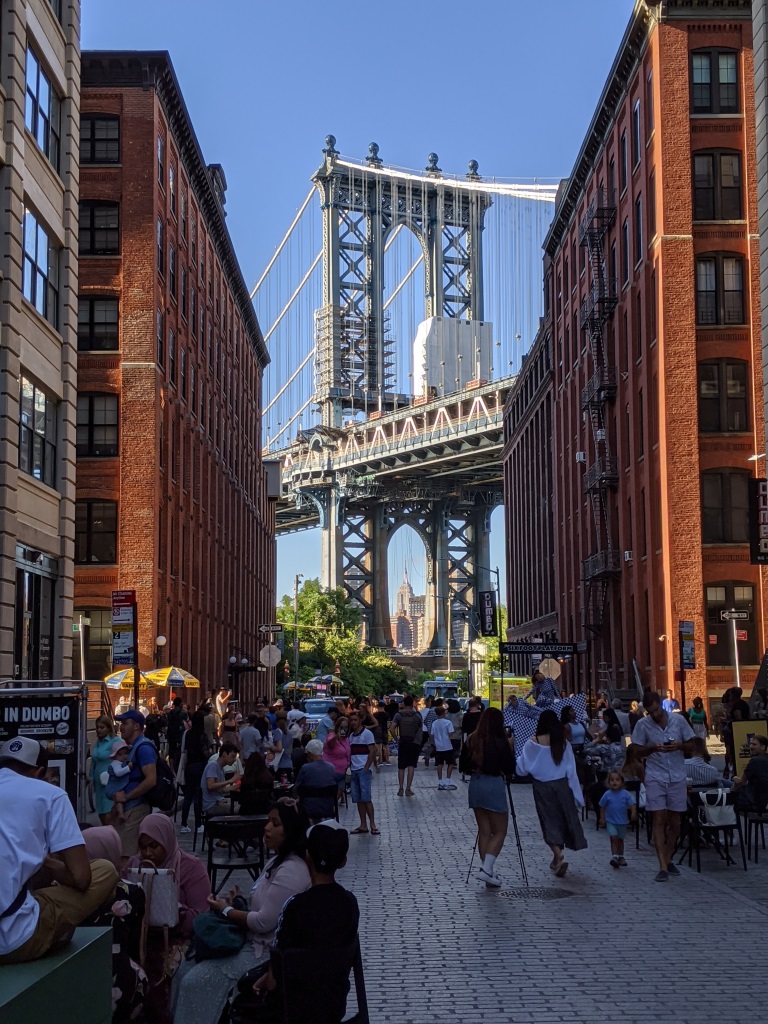 Seguendo i consigli delle varie guide turistiche, lo abbiamo attraversato per intero e siamo arrivati nel quartiere di Brooklyn, che proprio nei pressi della base del ponte è molto vivace, con una isola pedonale e molti localini con tavoli all’aperto.