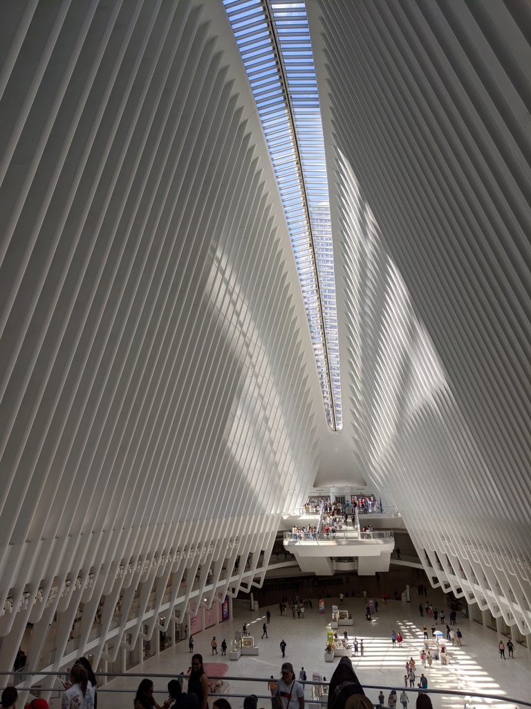 Raggiunto il World Trade Center, l’attenzione è stata catturata dall’Oculus bianco, un centro commerciale sotto il livello del piano strada con una curiosa copertura ramata.