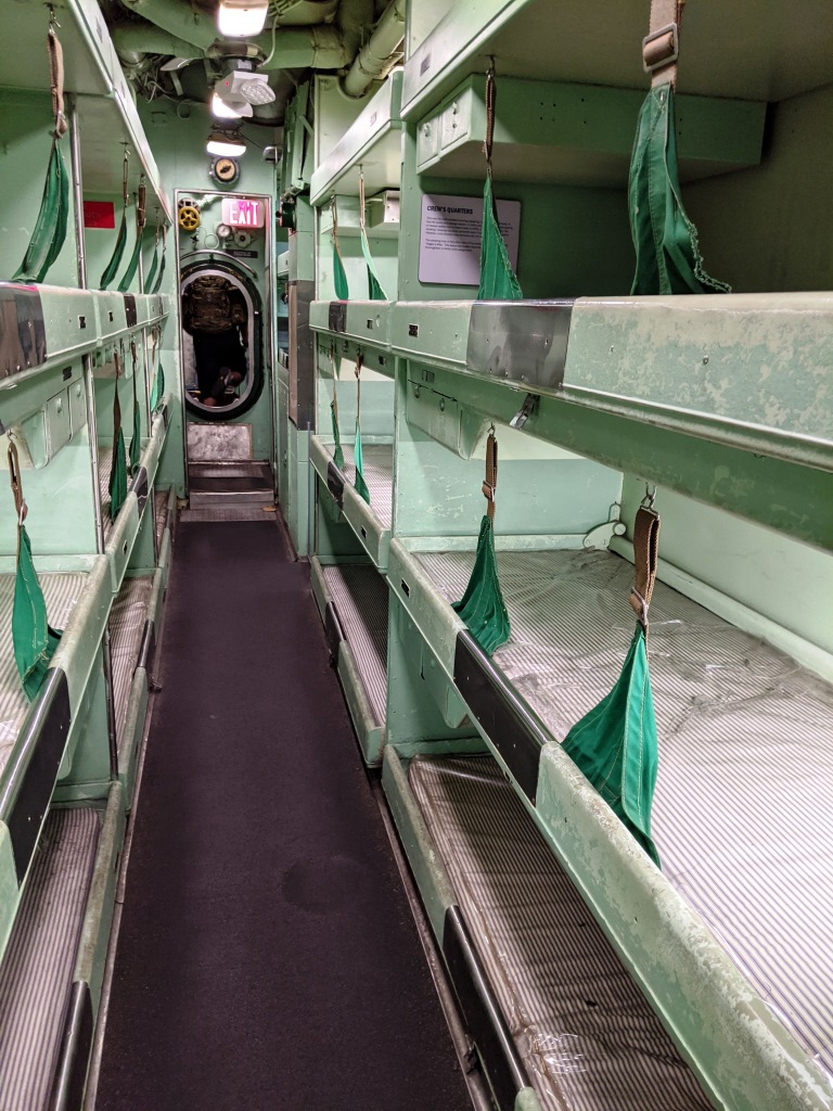 Gli spazi sono angusti, quindi non è consigliabile a chi soffre di claustrofobia. Impressionante pensare che in uno spazio così ristretto vivevano per mesi 100 persone, che facevano la doccia all’incirca ogni 2 mesi all’incirca. Le cuccette dei militari sono disposte su corridoi strettissimi, suddivise su quattro piani. Alcune erano collocate a fianco ai missili nucleari ed erano le più ambite perché più silenziose.