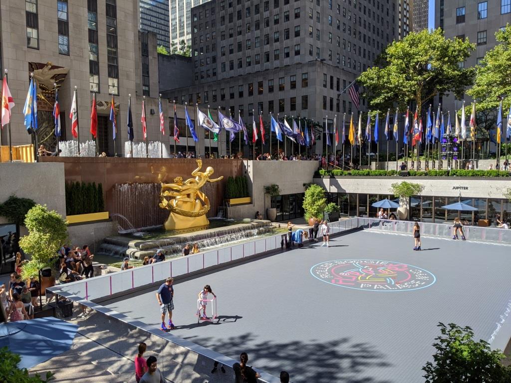 Il Rockfeller Center fu costruito negli anni ’30, abbattendo 228 case, per costruire “una città nella città”. Ed invero, fanno parte del complesso 14 edifici. Il cuore del Rockfeller Center è la pista di pattinaggio, sovrastata da una statua dorata. In inverno si fa pattinaggio su ghiaccio; in estate a rotelle.