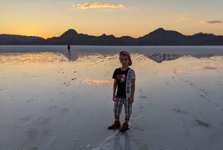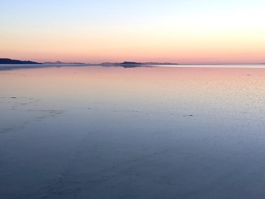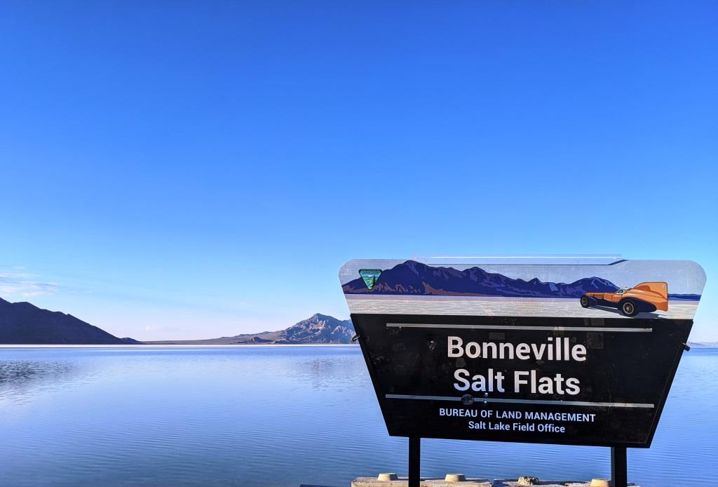 Abbiamo scelto questo luogo per pernottare in quanto attaccato al Boneville Salt Flats, cioè un parco statale famoso per il suo preistorico deserto salato di 260 km quadrati, utilizzato per le prove di velocità su auto quando si vogliono raggiungere i 1000 km/h. Quest’anno, causa il maltempo, le manifestazioni non si sono svolte perché il deserto si è ricoperto da un leggere strato d’acqua. Il paesaggio lascia comunque senza fiato.
