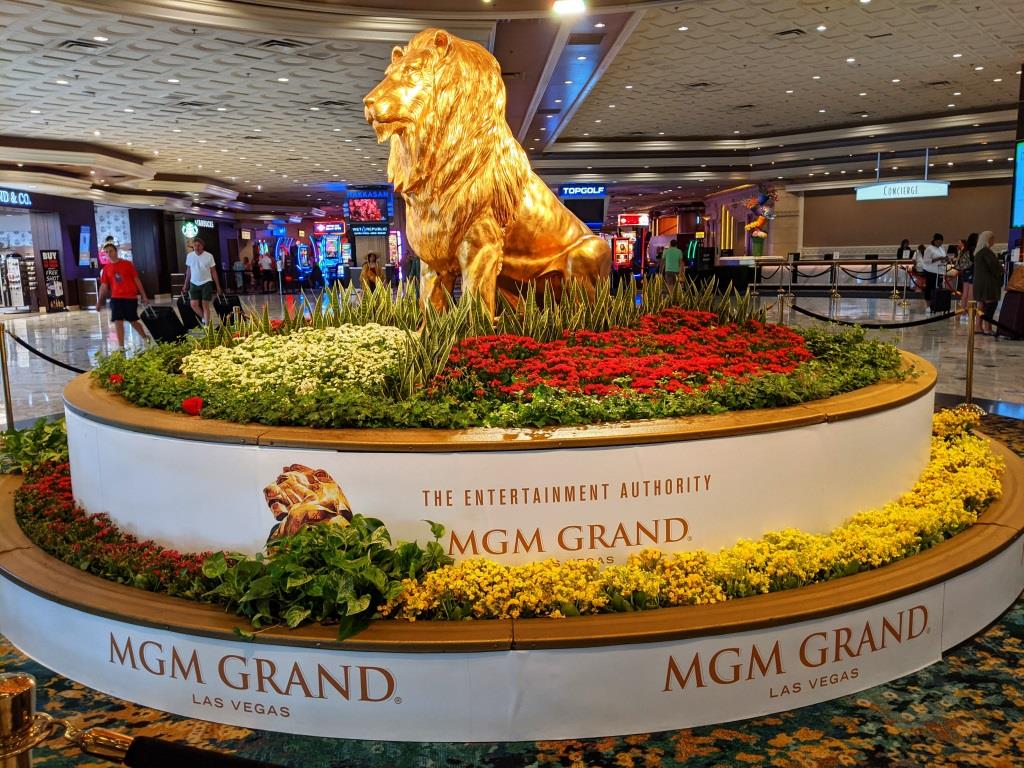 Il secondo albergo visitato è stato il più lussuoso MGM Grand, che abbiamo trovato meno emozionante, perché anonimo. Da segnalare c’è solo la statua del grande leone dorato nella hall principale.