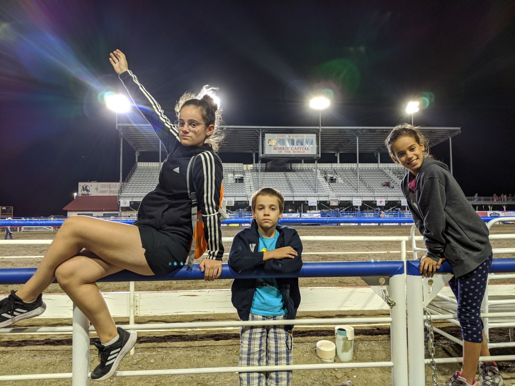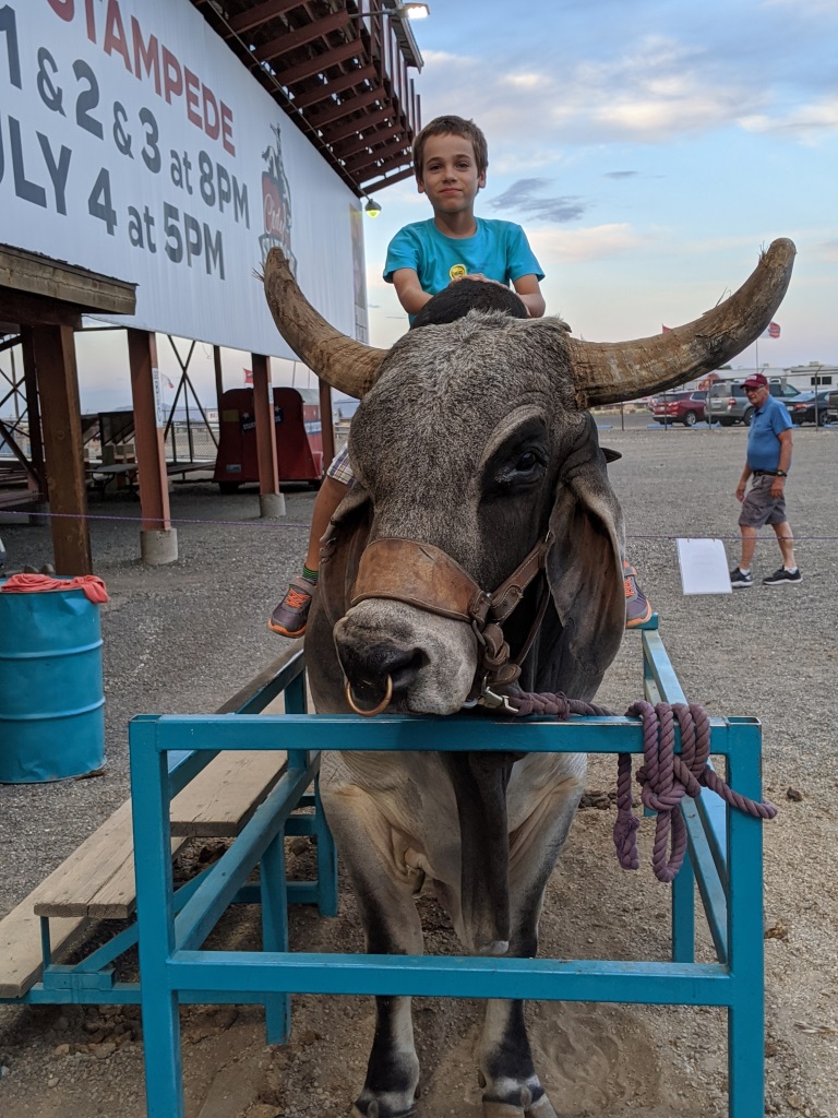 Dopo cena siamo andati a vedere il rodeo, che si tiene tra giugno e agosto tutte le sere. Anche per questo Cody si è autoproclamata “Rodeo Capital of the World” (Capitale mondiale del Rodeo). Prima di entrare nell’arena nostro figlio Tommaso è stato a cavallo di un toro.