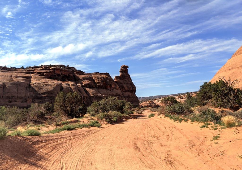 Il primo trail della giornata, con strada in salita, è stato il Gemini Bridges Trail, lungo poco più di 22 km. Il punto di partenza del trail è a nord di Moab, sulla sinistra della US 191, poco dopo l’ingresso dell’Arches National Park.