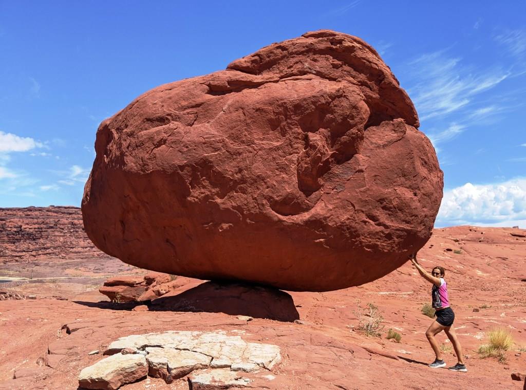 Il secondo punto che ha meritato una sosta è stato l’enorme masso a bordo strada, il cui equilibrio instabile ha richiesto un intervento di Romina.