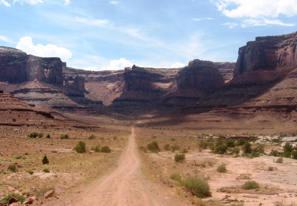 Il Long Canyon Road termina all’incrocio con la Potash Road, cioè la strada che costeggia il Colorado River e che partendo da Moab arriva a Island in the Sky, nel parco nazionale di Canyonlands (arrampicandosi nella parte finale sui fianchi del canyon, lungo il Shafer Trail).