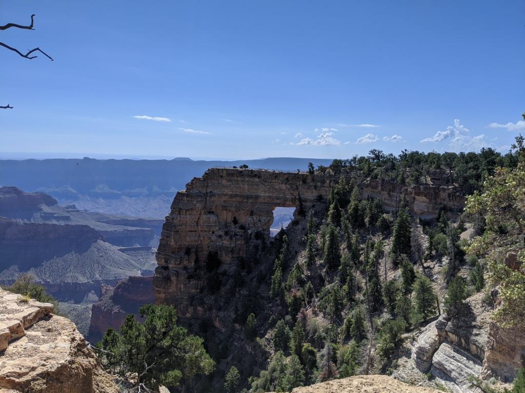 Il luogo più suggestivo è stato però Cape Royal, che si trova a 37 km dal visitor center e dal lodge. Questo è il punto più alto del Grand Canyon, visto che siamo a 2.684 m slm. Da questo punto il fiume dista 11 km in linea d’aria, e si trova 1,6 km più sotto.