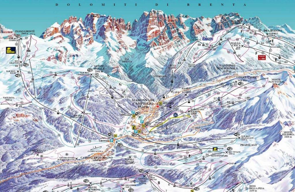A Campiglio si scia ad altitudini tra i 1.500 metri del paese ed i 2.500 metri del Passo del Grostè, circondati dalle bellissime Dolomiti di Brenta. I panorami di Campiglio sono paragonabili a quelli di Cortina d’Ampezzo.