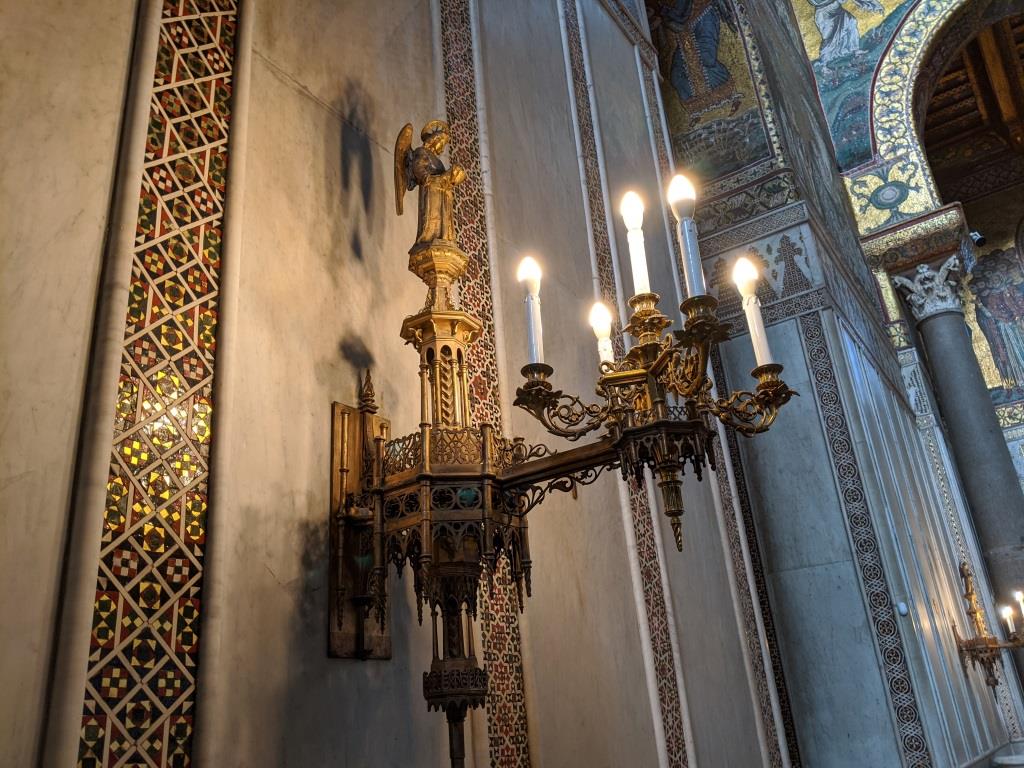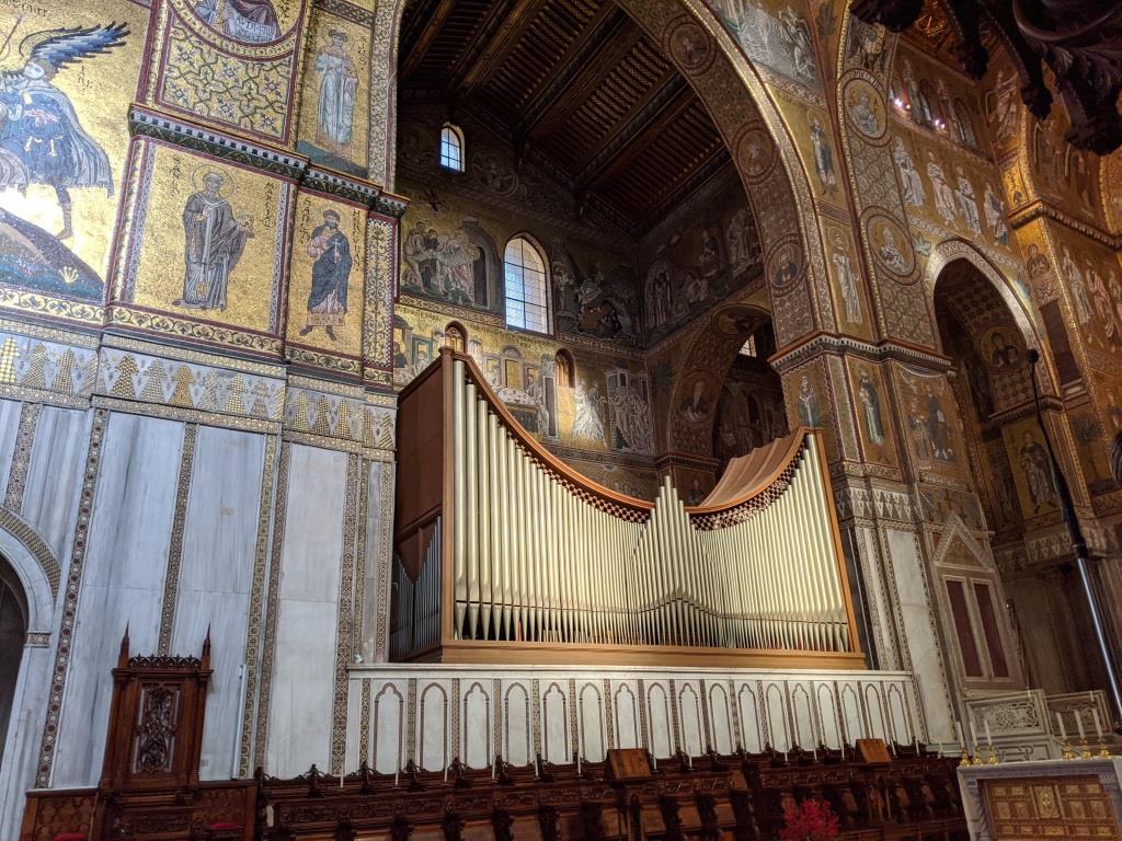 Se generalmente sono i mosaici ad essere considerati la parte più eccezionale della cattedrale, a me invece ha colpito soprattutto la magnificenza dei suoi interni, in tutti i suoi particolari: dai lampadari, all’organo, ai bassorilievi.