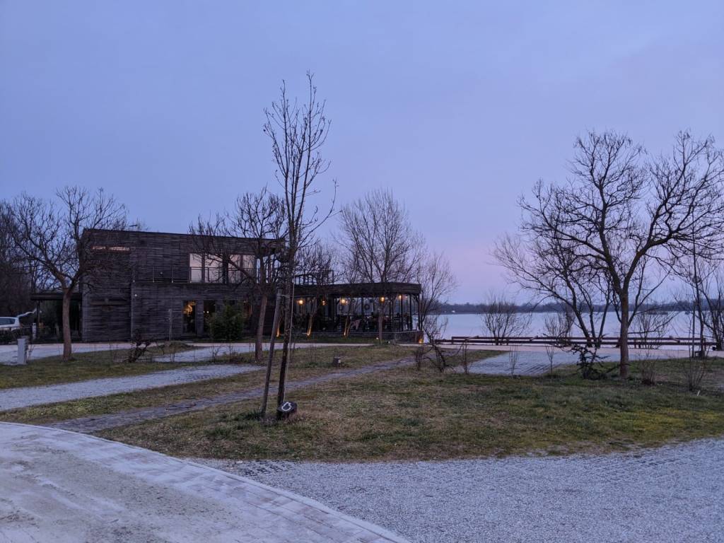 Vicino al campeggio c’è un bar – ristorante, ben frequentato. Ristorante e campeggio hanno la stessa gestione. Tant’è che essendomi io presentato una sera di bassa stagione, il check-in è stato fatto da una delle cameriere del ristorante.