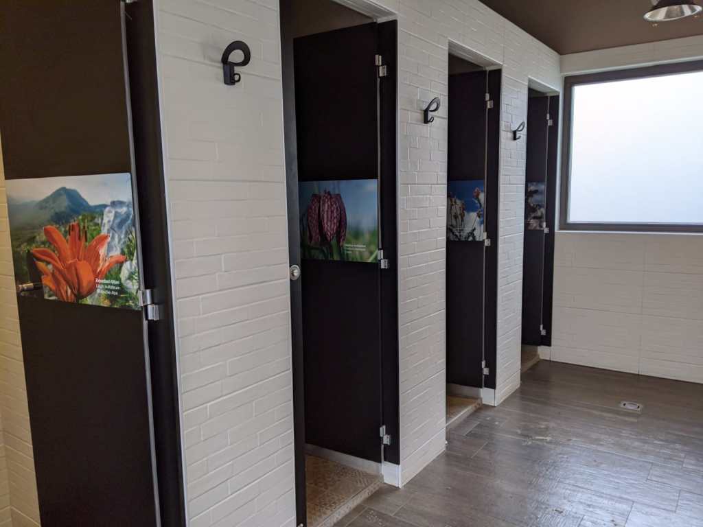 Ci sono docce calde gratuite, lavelli per le stoviglie, lavatrici.