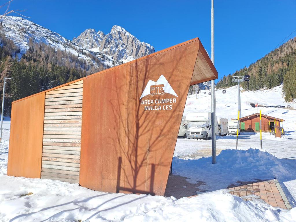 In estate l’area sosta camper Malga Ces deve essere altrettanto affascinante e comoda, dato che è un’ottima base per le escursioni a piedi o in bici (sei già abbastanza in “quota”), e c’è un piccolo parco giochi per i bambini e tavoli da picnic .