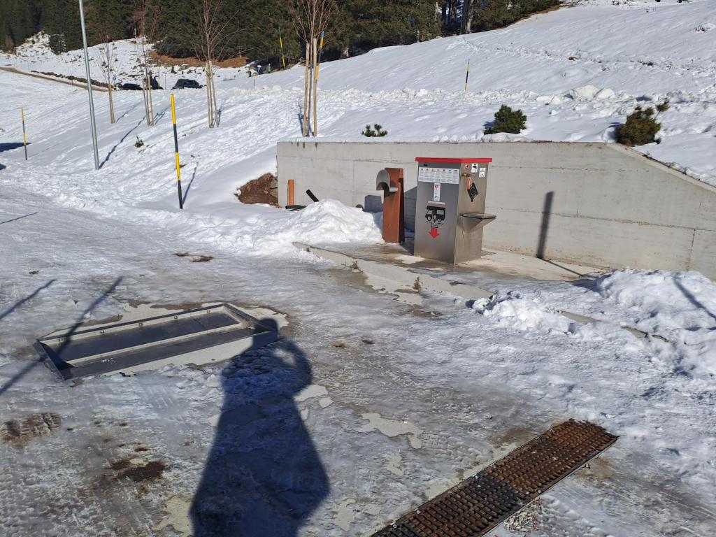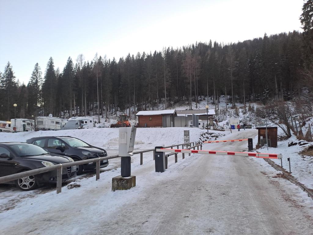 Questa seconda area sosta lascia senza respiro, per il suo bellissimo contesto. Si trova, infatti, letteralmente in mezzo alle piste da sci, in località Ces, a qualche chilometro a monte del paese; io la “ho scoperta” quando me la sono trovata davanti agli occhi mentre sciavo con la famiglia.
