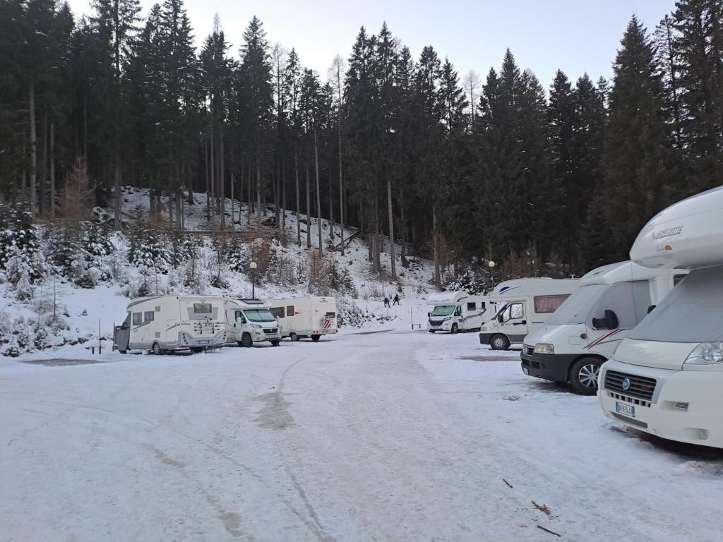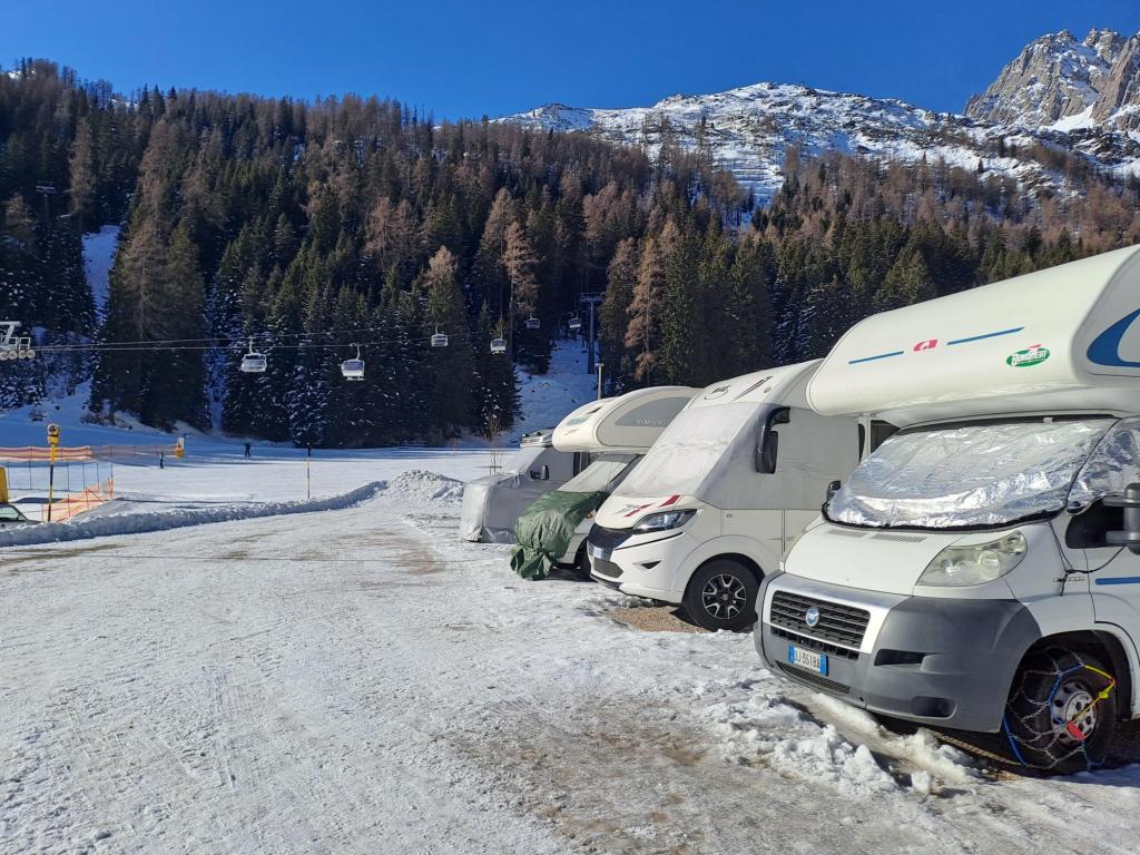 A San Martino di Castrozza ci sono due comodissime aree sosta perfettamente attrezzate, così vicine agli impianti e alle piste che queste ultime si possono raggiungere con gli scarponi ai piedi: