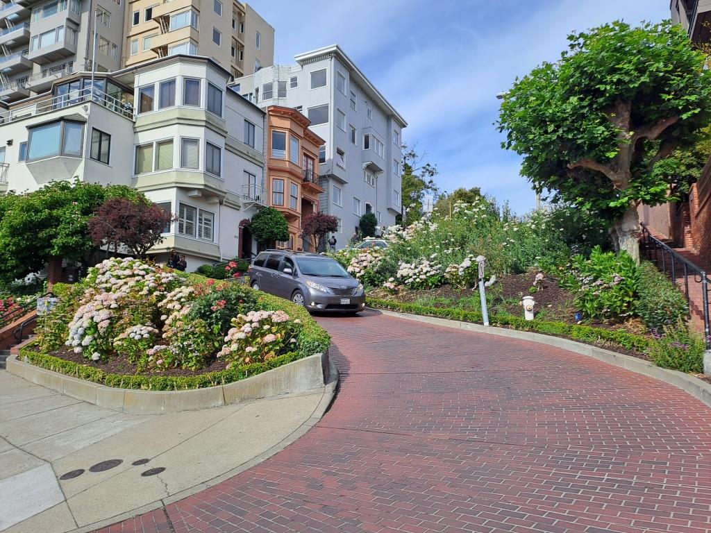 La prima attrazione della vacanza californiana della famiglia è stata Lombard Street, a San Francisco. Conosciuta come la “strada più tortuosa del mondo”, scelta per inaugurare la visita della città in quanto l’attrazione turistica più vicina al nostro albergo, e raggiungibile con una camminata di 15 minuti circa (qui sotto una foto di Lombard Street).
