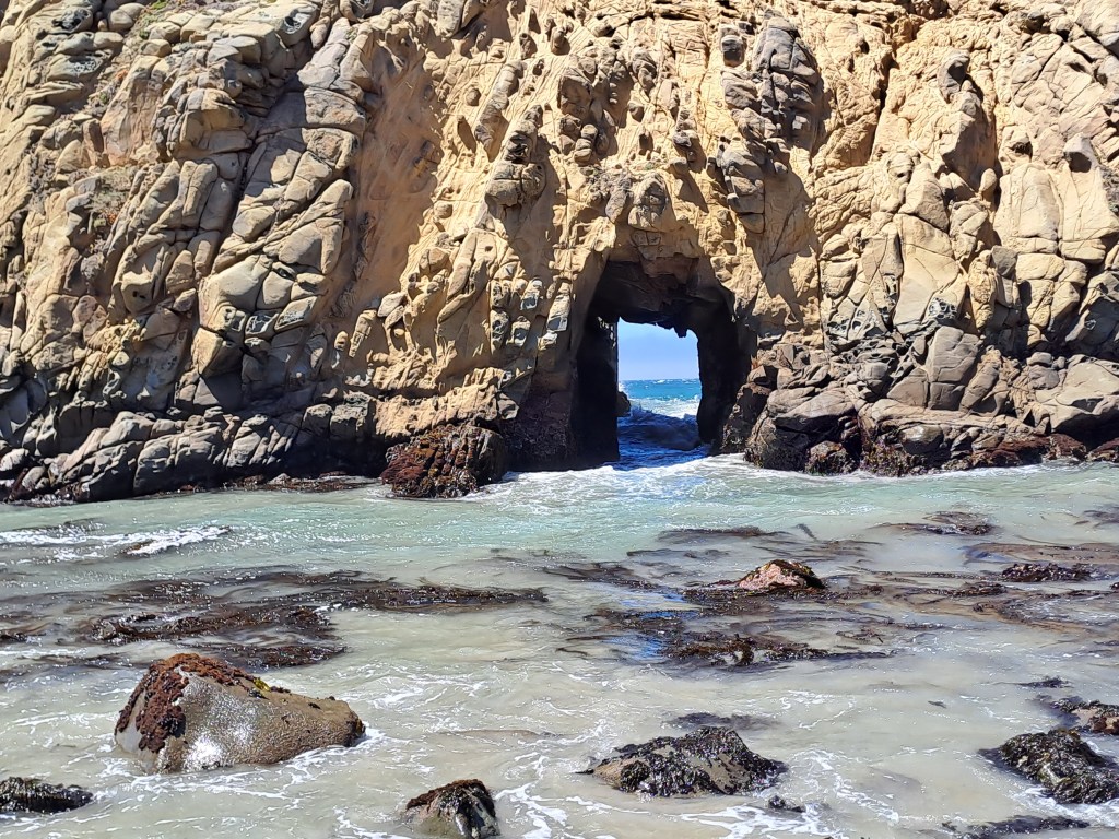 Ci è sembrato un posto troppo selvaggio per fare la giornata “a mare”; non credo che l’oceano Pacifico diventi mai liscio, ma in una tale evenienza dovrebbe essere “cool” attraversare questo misterioso buco negli scogli, che dalla forma sembra essere realizzato dall’uomo.