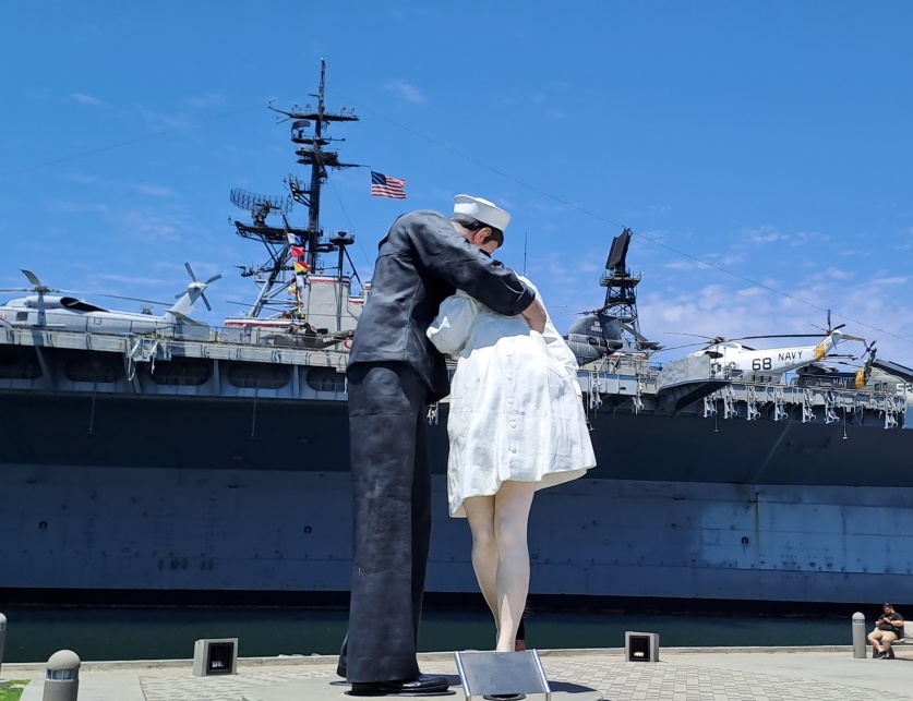 Ci ha tuttavia colpito la statua vicino all’USS Midway Museum, nota come “Unconditional Surrender” (“Resa Incondizionata”). Questa monumentale opera d’arte raffigura un marinaio che bacia una infermiera, ispirata alla celebre foto scattata da Alfred Eisenstaedt durante le celebrazioni per la fine della Seconda Guerra Mondiale.