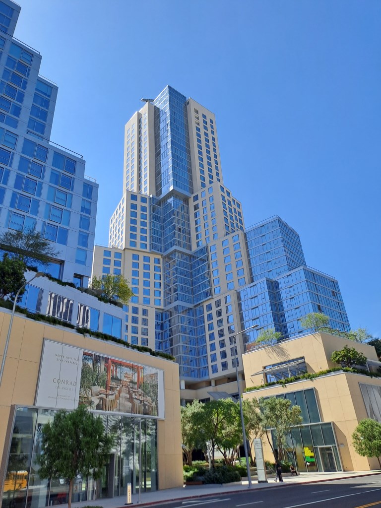 Altro edificio che ci ha attirato la nostra attenzione vicino alla Walt Disney Concert Hall è il grattacielo conosciuto come “The Emerson“. Si tratta di un edificio residenziale di lusso progettato sempre da Frank Gehry (lo stesso architetto responsabile della progettazione della Walt Disney Concert Hall). The Emerson, completato nel 2014, è noto per la sua architettura distintiva e audace, che presenta una serie di cubi interconnessi che si estendono verso l’alto. Questa struttura è diventata un’icona architettonica del centro di Los Angeles, insieme alla Walt Disney Concert Hall e ad altri edifici circostanti. Oltre al suo design unico, The Emerson offre appartamenti di lusso con viste spettacolari sulla città di Los Angeles e sulla baia di San Pedro. La sua posizione strategica, proprio accanto alla Disney Concert Hall e al Grand Avenue Arts District, lo rende un luogo ambito per coloro che cercano una residenza di prestigio nel cuore della città.