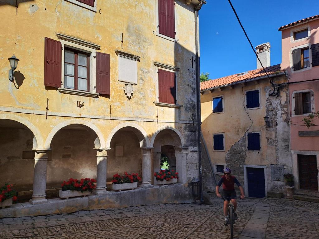 A metà della biciclettata (dopo circa 20 km di discesa!) siamo andati a visitare Montona, che con la sua spettacolare posizione in cima ad una montagna domina la verdeggiante valle sottostante. La salita al centro di Montona è stata la fatica principale della giornata, ripagata però dallo spettacolare panorama.