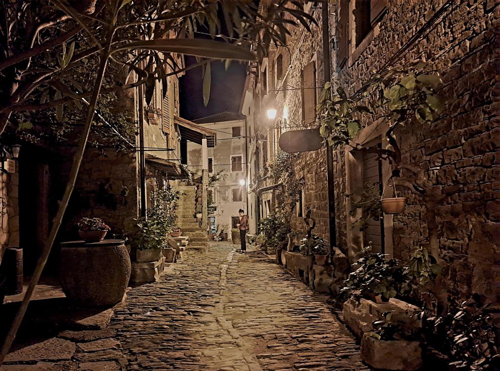 Anche solo una passeggiata – dopo cena – lungo le vie di Grisignana sono un’esperienza memorabile. Mentre scattavo questa foto ho anche pensato che abbiamo fatto bene a dividere il percorso in due tappe, altrimenti ci saremmo persi la magia di questo luogo.