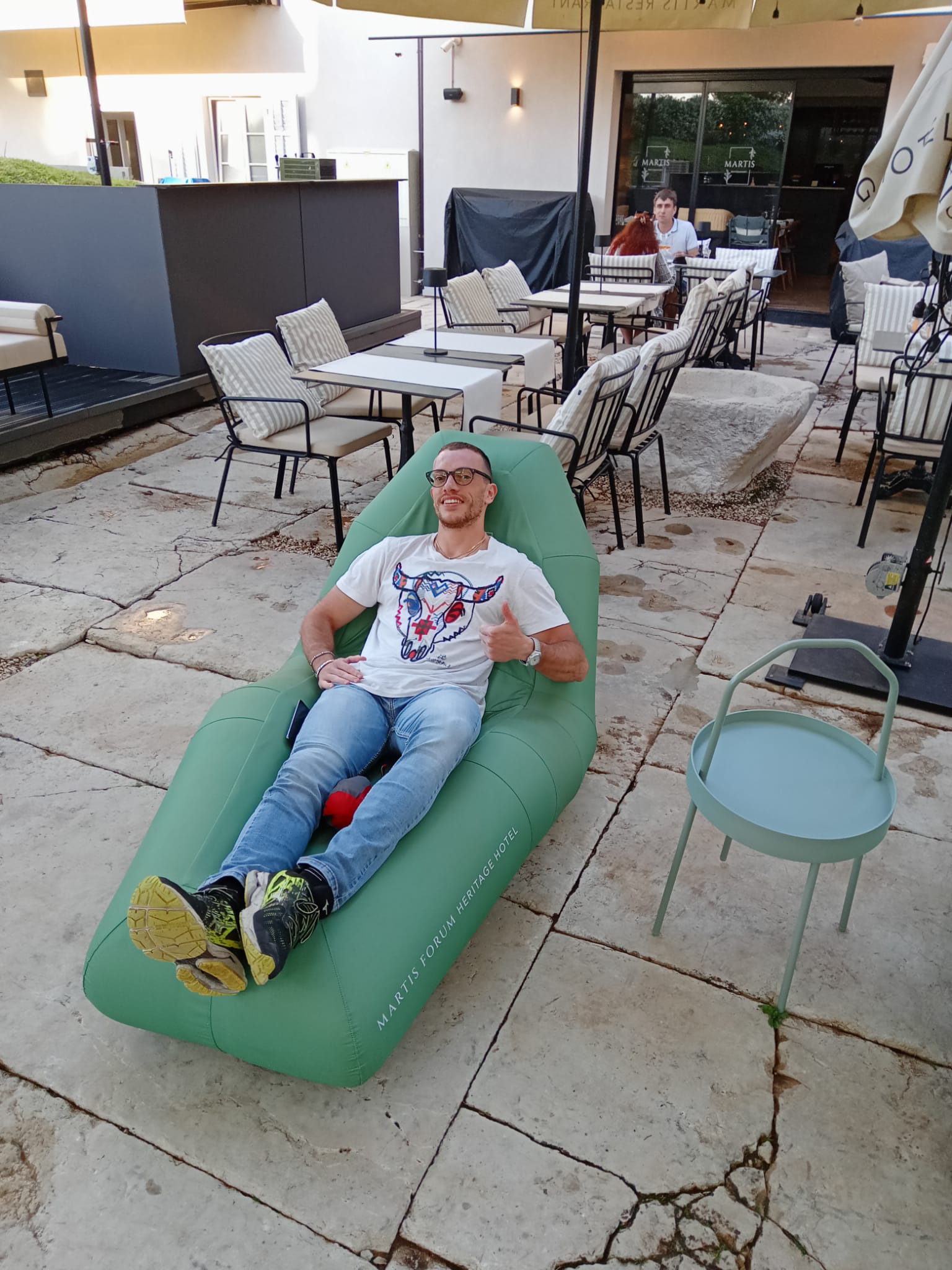 Preso possesso delle nostre due suite nel prestigioso Martis Forum Heritage Hotel, in pieno centro storico, c’è chi si è goduto il welcome drink offerto dalla direzione dell’hotel sotto un bell’ombrellone, e chi ha rifatto il bagno a mare (sempre Francesco e Michele).