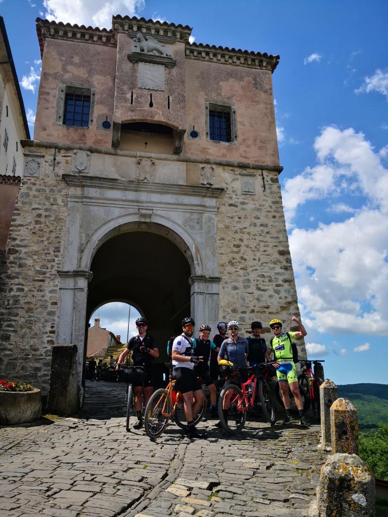 Questa esperienza di bike packing è stata concepita non solo come una “biciclettata”, ma come una vera e propria vacanza, con pause per scattare foto, visita delle città, e momenti di goliardia culinaria. Pertanto, nonostante tutti e sette avessimo avuto “le gambe” per percorrere la Parenzana in un giorno solo (si tratta di circa 120 km), abbiamo appositamente diviso la pista ciclabile in due tappe. In questo modo ci siamo goduti il paesaggio e la compagnia, arrivando a sera non troppo stanchi.