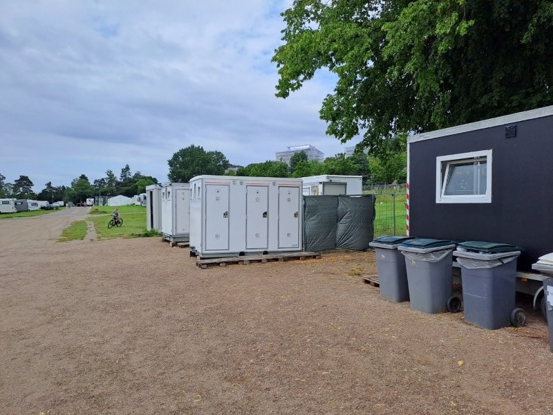 I servizi sono ospitati in moduli prefabbricati; ci sono sia i bagni sia le docce. Le strutture sono moderne e pulite, anche se provvisorie: sono sistemate su pallet di legno e collegate a impianti esterni.