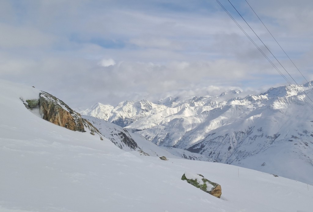 L’ultimo giorno abbiamo cambiato completamente scenario, dirigendoci verso la ski area Schiltorn Piz Gloria (quella più a destra, guardando la skimap).