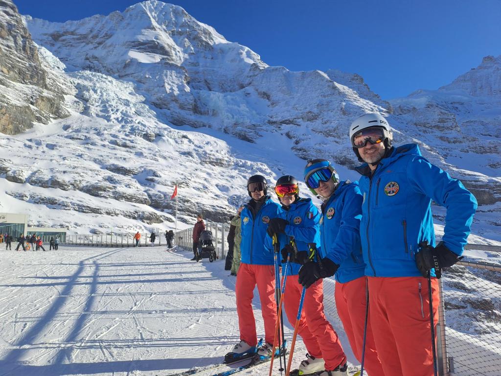 Nel corso della giornata abbiamo esplorato tutto il comprensorio della Jungfrau Ski Region, con i suoi ampi panorami dominati da Eiger, Mönch e Jungfrau, alternando piste rosse panoramiche a tratti più tecnici.