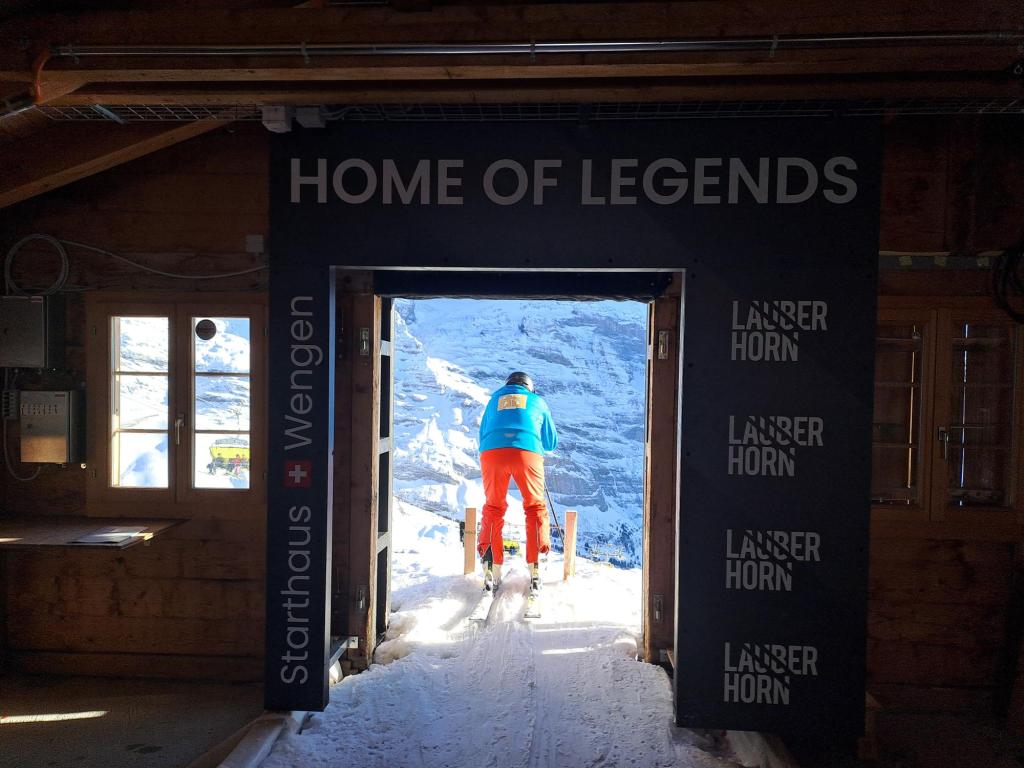 Tuttavia, non potevamo non provare l’esperienza di affacciarsi dal cancelletto di partenza della mitica “Lauberhorn”.