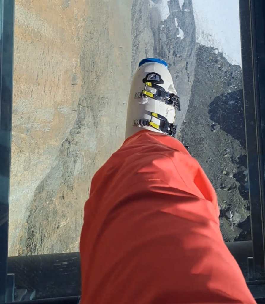 Tra una pista e l’altra Raff e Gek hanno deciso di affrontare la Thrill Walk: una passerella sospesa a strapiombo sulla parete rocciosa, con tratti in pavimento di vetro, un tunnel metallico da attraversare e un ultimo tratto con cordino d’acciaio su cui camminare. Un’esperienza breve ma intensa, soprattutto per chi soffre un po’ l’altezza.