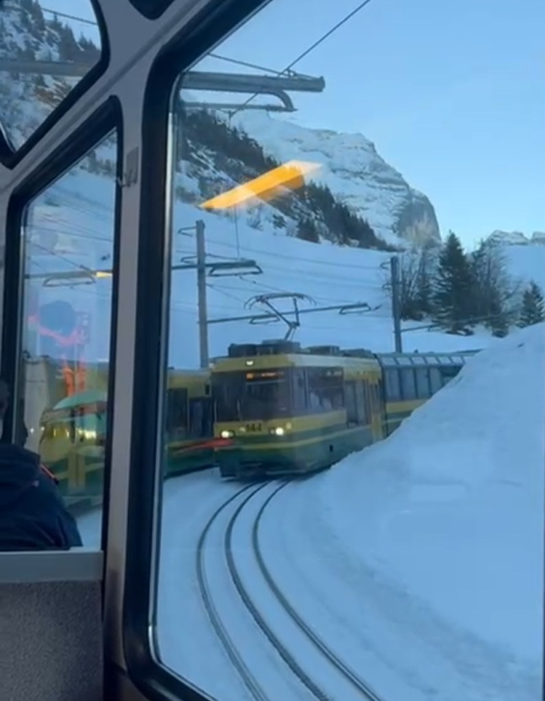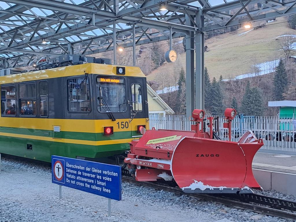 Il sabato mattina ci siamo spostati a Wengen, raggiungendola con il caratteristico trenino a cremagliera, preso proprio di fronte all’albergo. Il fatto che il paese sia senza auto contribuisce a creare in tutta la valle un ambiente ordinato e tranquillo, dove il trasporto su rotaia è parte integrante dell’esperienza.