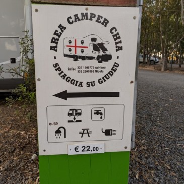 Dove si trova area camper Chia L’area sosta camper si trova a Chia, nel Comune di Domus De Maria (CA), nei pressi della spiaggia del Su Giudeo (una traversa di via Spartivento). Coordinate GPS: 38.891567, 8.862104. Questa area attrezzata merita speciale menzione perché si trova attaccata alla bellissima spiaggia di Su Giudeo, vicino allo stagno … More Area Sosta Camper Chia